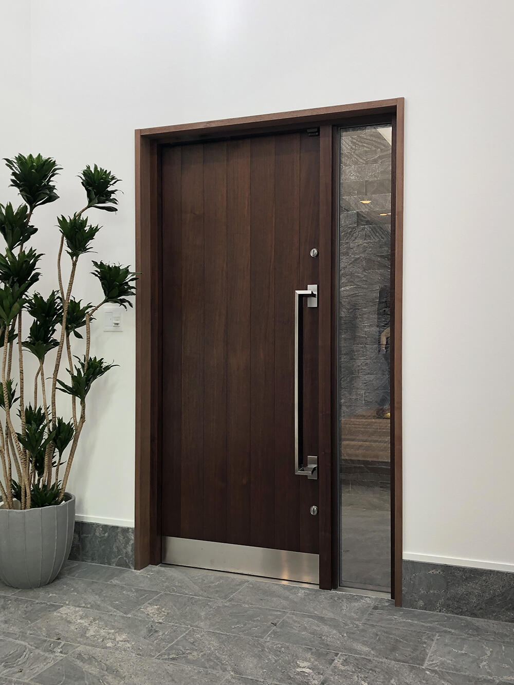 片袖付き片開きドア 樹種 ブラックウォルナット無垢材 color カルデットシリーズ エボニー色 size FW 1293×FH 2200
