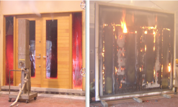 耐火発泡剤が傍聴すると、外に出る白煙は減少、当社採用の複層ガラスは、割れることなく耐えております。